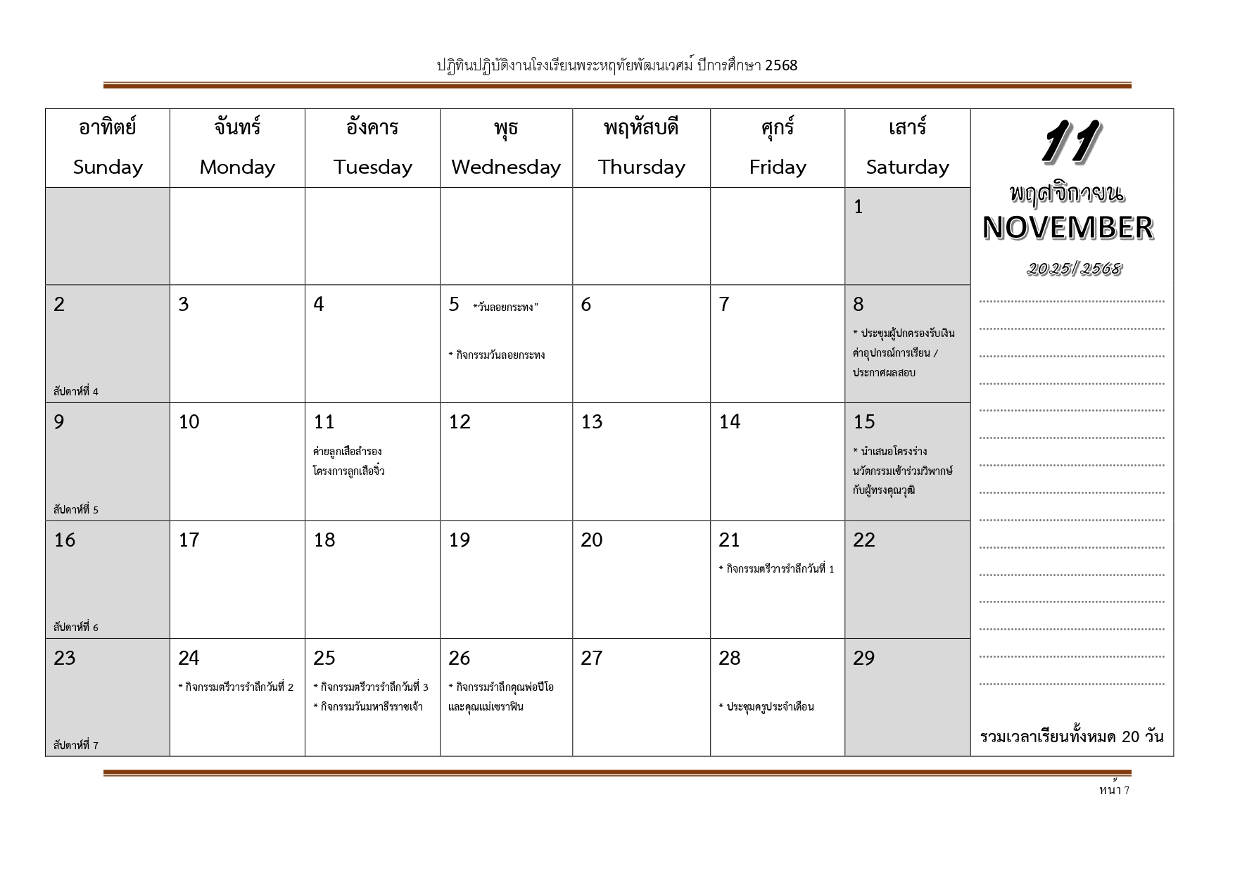 ปฏิทินโรงเรียน 2568 พฤศจิกายน 2025 จ. อ. พ. พฤ. ศ. ส. อา. 12 3456789 10111213141516 17181920212223 24252627282930 « ต.ค. Post Views: 4,098